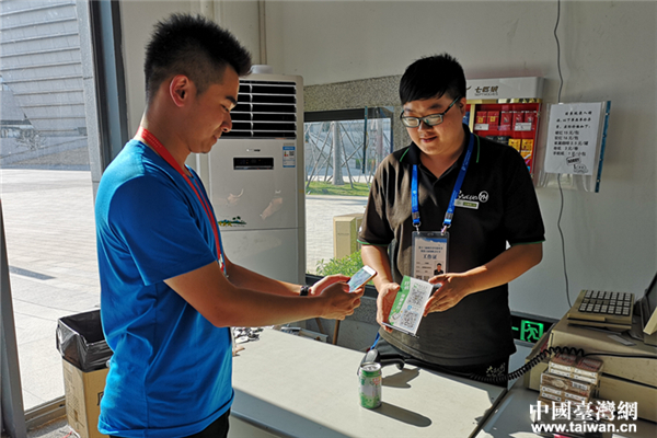 中國臺灣網(wǎng)8月11日福州訊 (記者 郜利敏 張露露)8月10日下午3點(diǎn)半,在海峽青年交流營地文化節(jié)B162,來自臺灣中國文化大學(xué)的大二學(xué)生林詮盛出示臺胞證,由中國移動(dòng)公司和福建海峽銀行工作人員為其辦理大陸手機(jī)卡及銀行卡,然后在手機(jī)上下載支付軟件并綁定銀行卡開通支付功能。20分鐘后,他到隔壁超市使用移動(dòng)支付消費(fèi),“真便捷!”