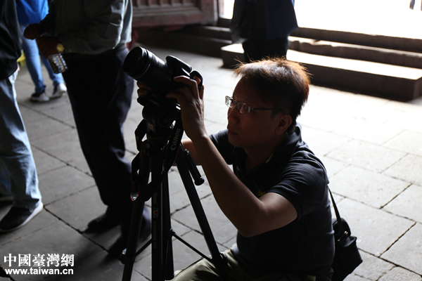 認(rèn)真拍攝的臺灣媒體人吳文勝。(中國臺灣網(wǎng) 袁楚 攝)