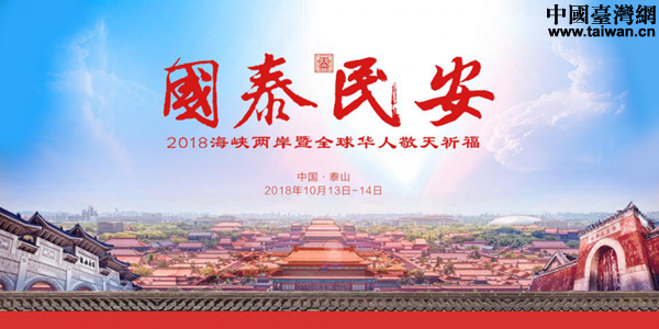 中國(guó)臺(tái)灣網(wǎng)9月30日訊 國(guó)泰民安·2018海峽兩岸暨全球華人敬天祈福活動(dòng)將于10月13—14日在山東泰安盛大舉行。