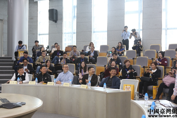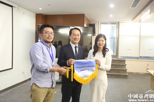 新浪網副總裁鄧慶旭與兩岸新媒體參訪團成員進行經驗分享。(中國臺灣網 陳佳慧 攝)