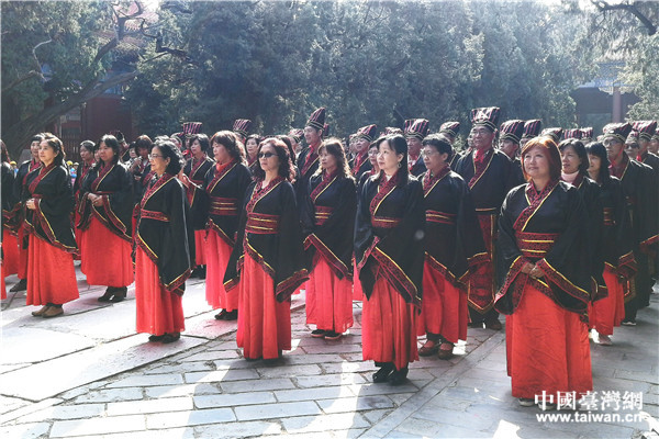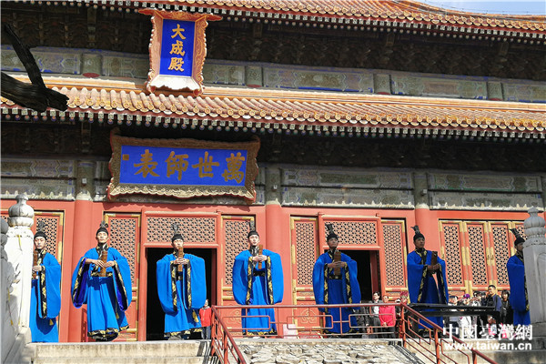 百余名臺灣嘉賓在大成殿前祭拜孔子。(中國臺灣網(wǎng) 張露露 攝)