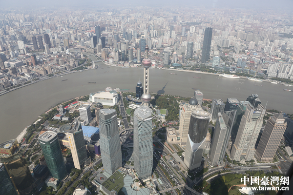 上海中心大廈頂層一覽外灘景色。(中國臺灣網 陳佳慧 攝)