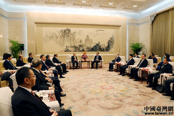 中共中央政治局常委、全國政協主席汪洋會見王文淵率領的臺灣工業總會理監事參訪團一行。(中國臺灣網 尹賽楠 攝)