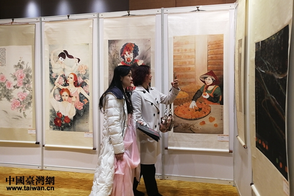 觀眾在欣賞畫作。(中國臺灣網(wǎng) 張露露 攝)