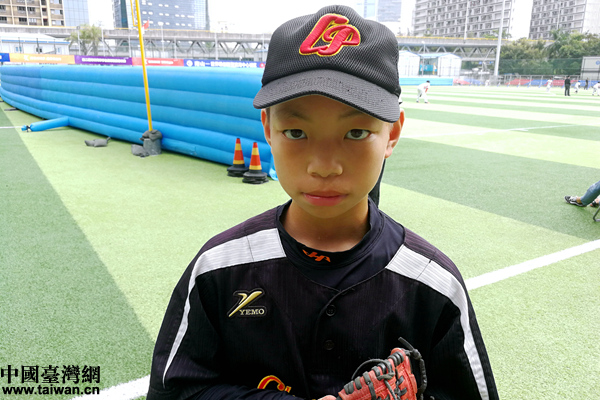 臺(tái)灣桃園市中平小學(xué)棒球隊(duì)員馮冠宇。(中國臺(tái)灣網(wǎng) 尹賽楠 攝)