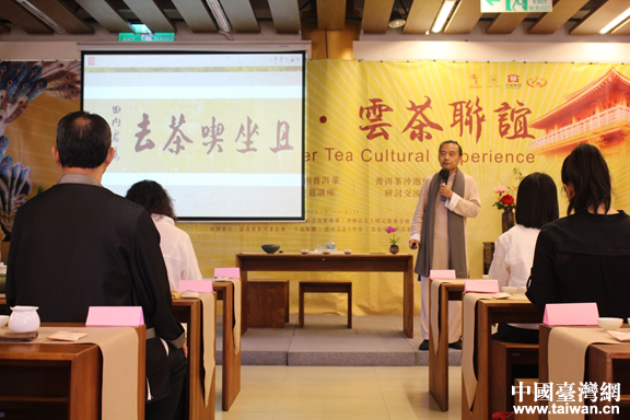 云南普洱茶沖泡技藝研討交流會現(xiàn)場,茶藝師向大家講解沖泡技巧。 (中國臺灣網(wǎng) 全志強 攝)