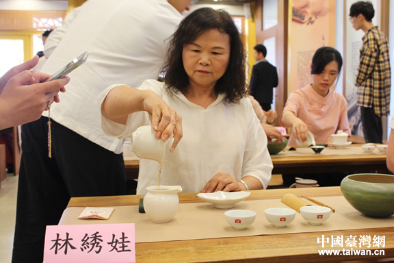 臺灣茶協(xié)會副理事長林繡娃進行茶藝展示。(中國臺灣網(wǎng) 全志強 攝)