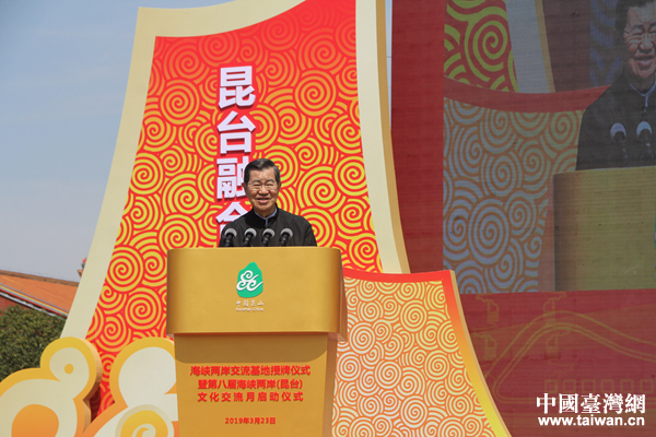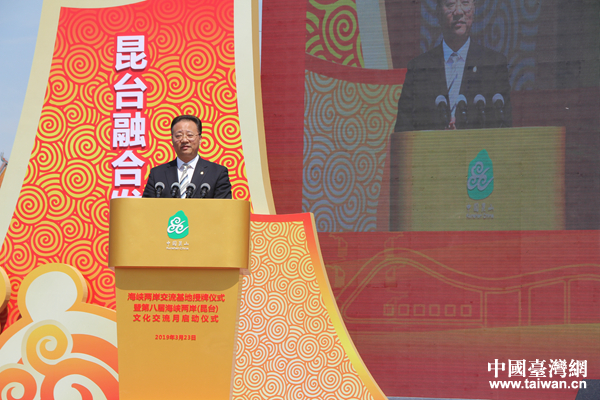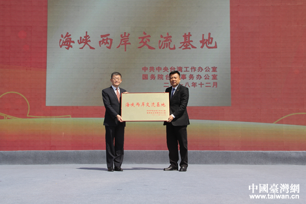 3月23日上午,昆山慧聚廣場(chǎng)“海峽兩岸交流基地”授牌儀式在當(dāng)?shù)嘏e行。圖為中共中央臺(tái)辦、國(guó)務(wù)院臺(tái)辦交流局局長(zhǎng)黃文濤向昆山市授牌。(中國(guó)臺(tái)灣網(wǎng) 汪明珠 攝)
