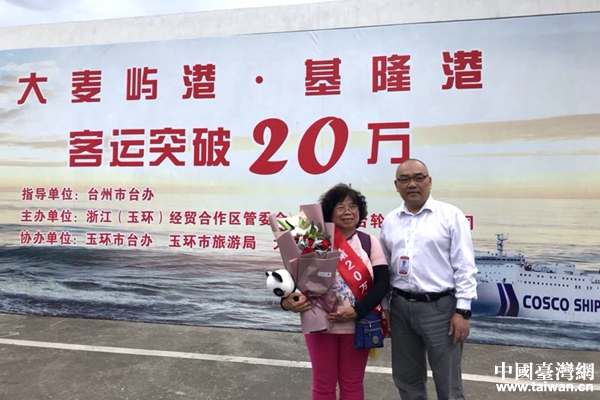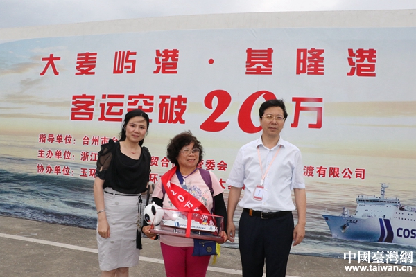 中國臺(tái)灣網(wǎng)5月25日玉環(huán)訊(記者 普燕) 5月25日下午,浙江省玉環(huán)市大麥嶼港旅客大廳人頭攢動(dòng),熱鬧非凡。玉環(huán)市領(lǐng)導(dǎo)和400多名兩岸旅客,共同見證和慶祝大麥嶼港對臺(tái)海上直航突破20萬人次這一具有歷史意義時(shí)刻的誕生。來自臺(tái)中的劉細(xì)妹成為第20萬人次幸運(yùn)旅客。