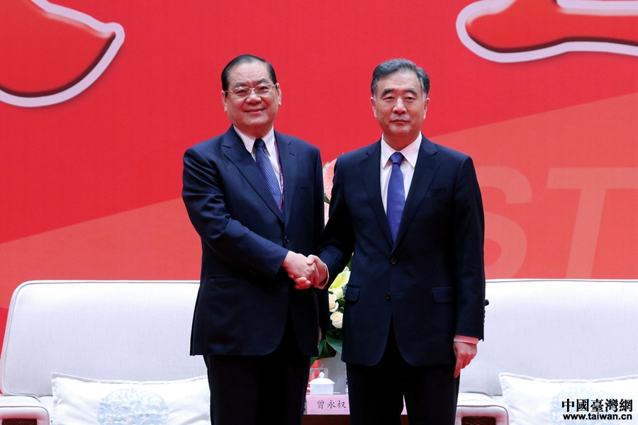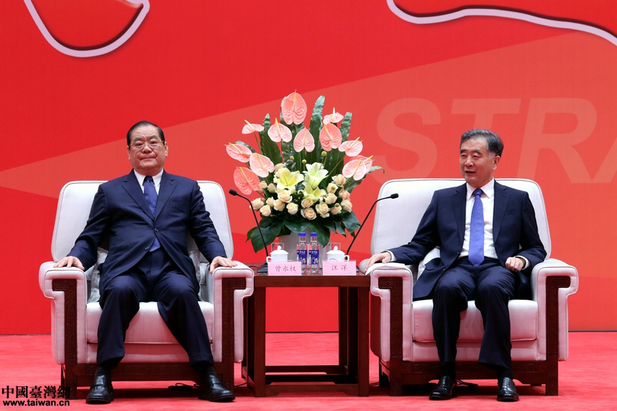 論壇開幕前,汪洋會見了出席論壇的部分兩岸嘉賓和主辦單位代表。(中國臺灣網 尹賽楠 攝)