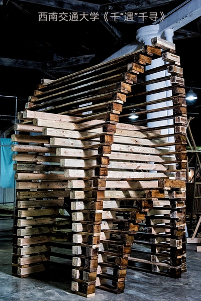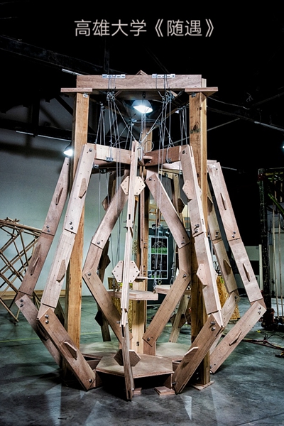 7月14日大學生實體建構大賽開賽以來,來自海峽兩岸15所高校的大學生們,已經在駁二藝術社區緊張搭建了兩天,將設計藍圖變成模型呈現。7月16日上午,所有作品搭建完成,等待專家評委的檢驗。十五件作品造型各異,構思新穎,用各種方式詮釋本屆大賽的主題“遇見”。大連理工大學的作品《雙溪》,用交錯、旋轉上升的設計,著意于體現禪意與生命力量共存的體驗,也寓意著海峽兩岸文化交融、合為一體、茁壯成長。西南交通大學《千“遇”千尋》,立意在于引導人與人的相遇,通過拱形通道制造不期而遇的效果:只有你付出真心,才能迎來你期待的真誠相遇。高雄科技大學的作品名為《乘風破浪》。作品線條起伏,頗具動感,與海浪融為一體。設計者在對臺灣北海岸線地貌進行了仔細觀察,將整個設計放置于自行車道上,讓路過的人能夠坐下來觀山望海,又為他們提供了可安放腳踏車的車位,相當貼心。