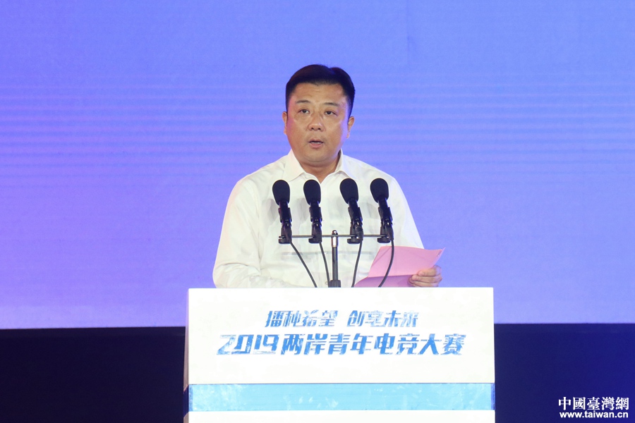 中國臺灣網7月24日昆山訊 (記者 尹賽楠)“花開并蒂,橋連兩岸。”7月24日晚,2019兩岸青年電競大賽總決賽于江蘇省昆山市花橋國際博覽中心拉開戰幕。兩岸企業家峰會大陸方面理事長郭金龍、臺灣方面理事長蕭萬長,江蘇省人民政府省長吳政隆,江蘇省委常委、蘇州市委書記周乃翔,江蘇省臺辦主任練月琴,昆山市委書記杜小剛以及兩岸大學生、電競愛好青年、媒體代表共600多人出席開幕式。