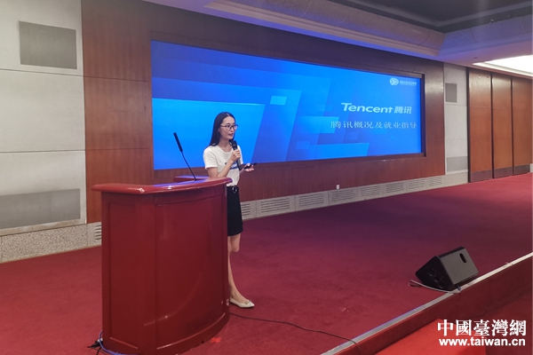 騰訊公司招聘活水部招聘經(jīng)理蔡巧巧演講。(中國臺灣網(wǎng) 李航 攝)