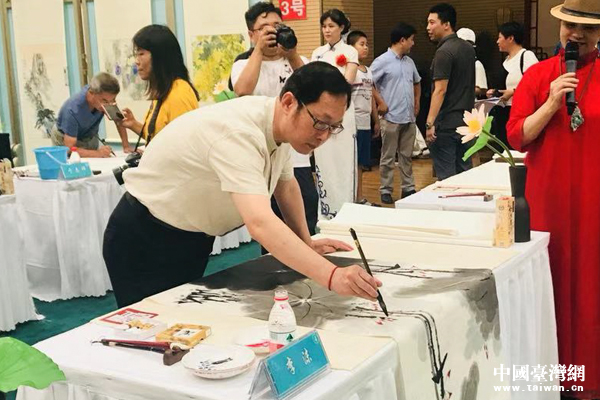 4日下午,兩岸武術(shù)家、書畫家、武術(shù)愛好者共計(jì)160余人在北京月壇綜合訓(xùn)練館武術(shù)文化交流中心參加了盛大的“武藝天下”武術(shù)書畫攝影交流活動(dòng)。此次活動(dòng)的亮點(diǎn)是專門創(chuàng)作的長達(dá)12米的“荷和溢美”畫卷,由中國職工書法家協(xié)會(huì)理事、國臺(tái)辦兩岸交流中心苗京平及臺(tái)灣著名收藏家鄭宗坤題字,與會(huì)所有嘉賓行印留念,成為海峽兩岸交流和親情的印證。