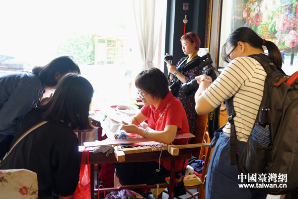 臺青聽老師講刺繡(中國臺灣網 楊旋 攝)