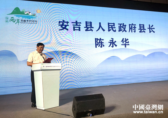 安吉縣人民政府縣長陳永華在論壇開幕式致辭。 (中國臺灣網(wǎng) 李航 攝)