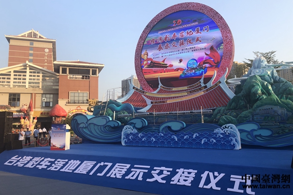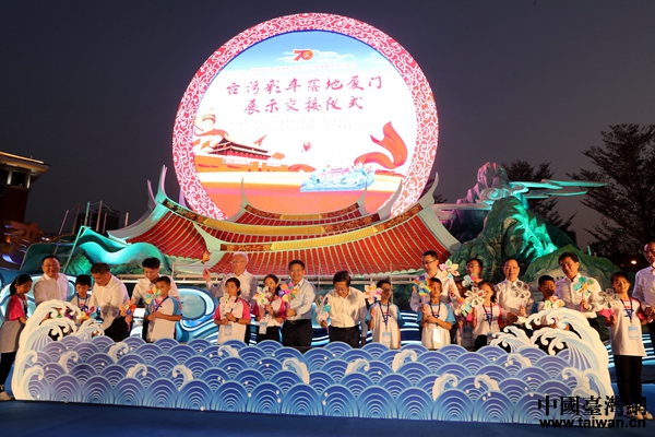 中國臺灣網21日廈門訊(記者 李航)20日下午,由國務院臺灣事務辦公室、廈門市人民政府主辦,廈門市人民政府臺港澳事務辦公室、集美區人民政府承辦的臺灣彩車落地廈門展示交接儀式在集美新城舉行。中共中央臺辦宣傳局局長馬曉光在儀式上致辭,并將彩車鑰匙交給廈門。廈門市委副書記陳秋雄、副市長韓景義參加儀式。