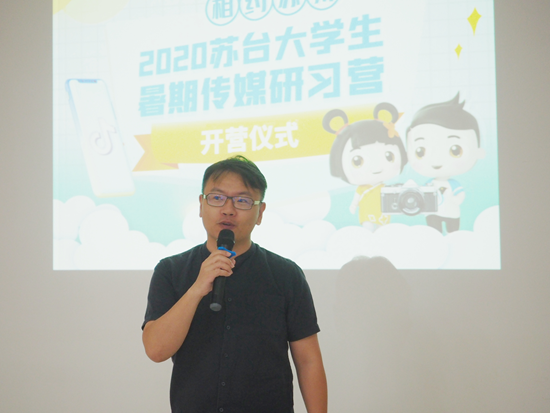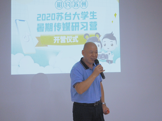 蘇州今日視界文化傳媒有限公司總編輯宋志立在致辭中表示,如今短視頻、直播等行業發展迅猛,市場前景廣闊,蘇州今日視界為此次活動精心安排了豐富多彩的互聯網新媒體課程,導師團隊陣容強大,期待兩岸學子積極地交流與互動,在感受蘇州地道風情、品味人間煙火的同時也能學有所獲,不虛此行!