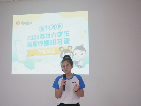 蘇州學生代表,蘇州大學新聞與傳播專業的碩士研究生鄭皓嘉發言,期待能夠通過此次研習營活動開闊視野,結交朋友。通過小組的分工和合作,交出富有生命力的作品。