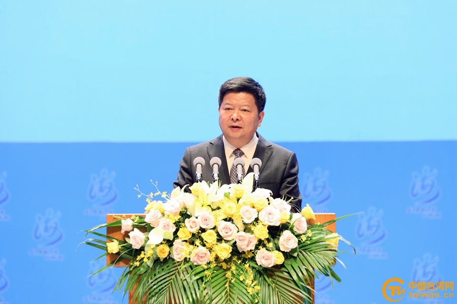 中共中央臺辦、國務院臺辦副主任龍明彪主持論壇大會。(中國臺灣網 尹賽楠 攝)