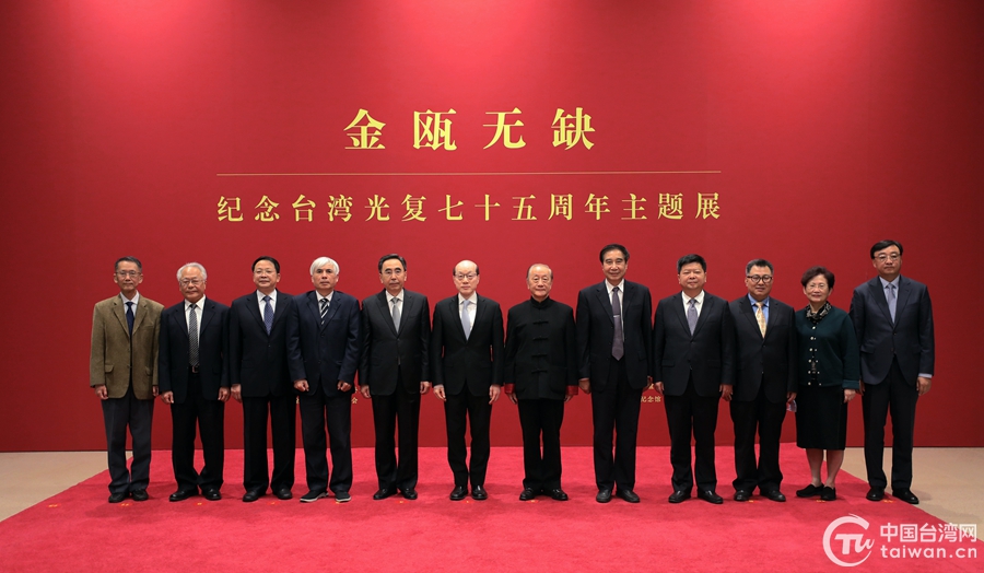 中國臺(tái)灣網(wǎng)10月25日北京訊 “金甌無缺——紀(jì)念臺(tái)灣光復(fù)七十五周年主題展”10月25日在中國國家博物館開幕。中共中央臺(tái)辦主任劉結(jié)一、全國政協(xié)港澳臺(tái)僑委員會(huì)主任朱小丹、全國臺(tái)聯(lián)會(huì)長(zhǎng)黃志賢、臺(tái)盟中央副主席楊健、新黨榮譽(yù)主席郁慕明等兩岸各界人士100多人出席開幕式。