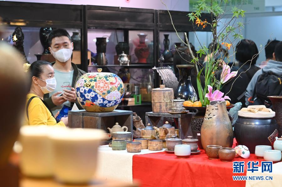 這是11月16日在第十四屆海峽兩岸茶業(yè)博覽會(huì)上拍攝的陶瓷藝術(shù)品展位。