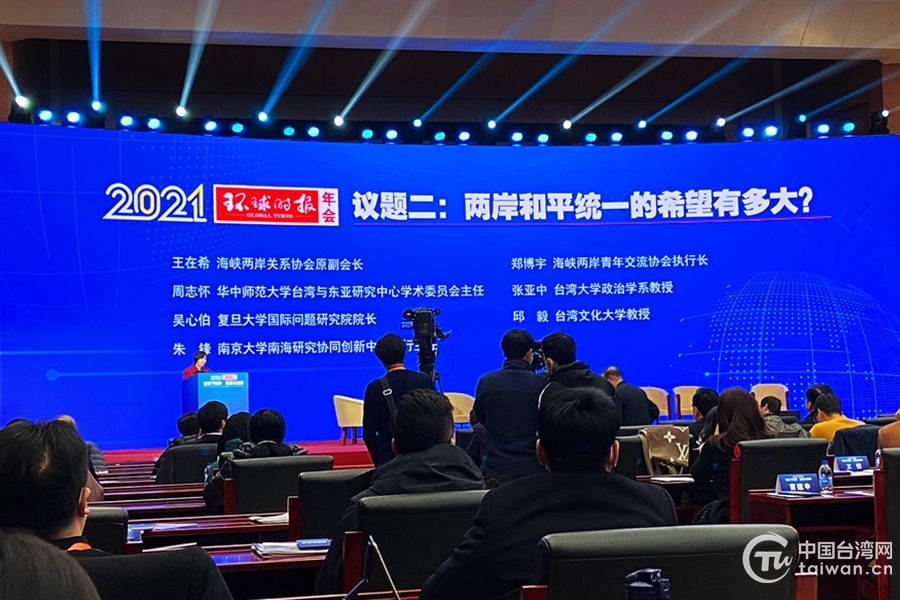 2021《環(huán)球時(shí)報(bào)》年會(huì)2020年12月5日在北京舉辦。圖為年會(huì)現(xiàn)場(chǎng),“兩岸和平統(tǒng)一的希望有多大?”成為本次年會(huì)最受關(guān)注的議題之一。(中國(guó)臺(tái)灣網(wǎng) 李柏濤 攝)