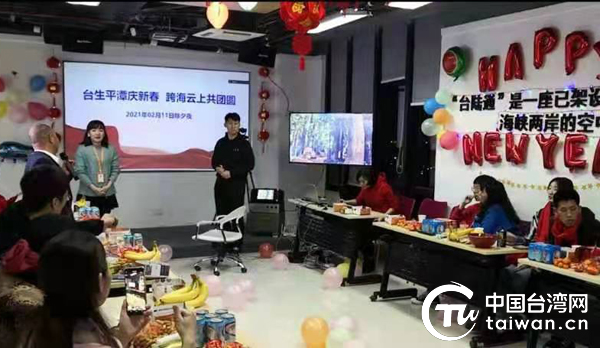 中國臺灣網2月13日平潭訊  2月11日,農歷大年三十當晚,一場名為“臺生平潭慶新春 跨海云上共團圓”的聯歡活動在平潭臺創園“臺陸通”公司舉行。13位來自大陸雙一流大學的臺灣青年學子及“臺陸通”臺籍員工在公司工作人員陪同下,一同過了一個充滿歡歌笑語的溫馨年夜。