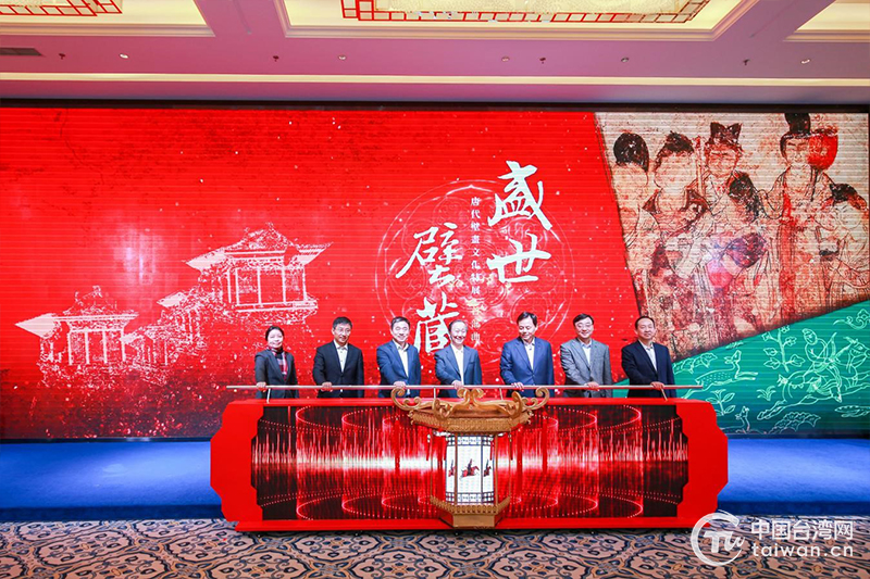 2021年“盛世壁藏——唐代壁畫文化特展·首部曲”走進臺灣校園巡展活動開幕式通過視頻連線方式在兩岸舉行。圖為開幕式北京現(xiàn)場。(中國臺灣網(wǎng)發(fā))