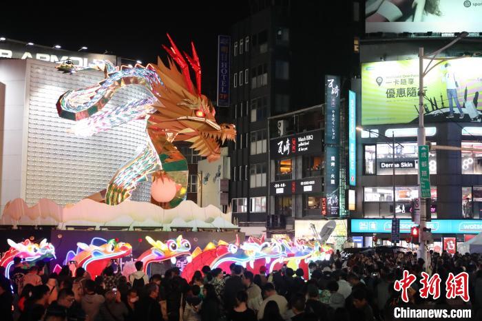農(nóng)歷春節(jié)期間,以“龍躍光城”為主題的2024“臺北燈節(jié)”在臺北西區(qū)開展。今次的燈組共設(shè)置123座,位于西門町的“龍舞臺”吸引大批人潮駐足合影。中新社記者 楊程晨 攝