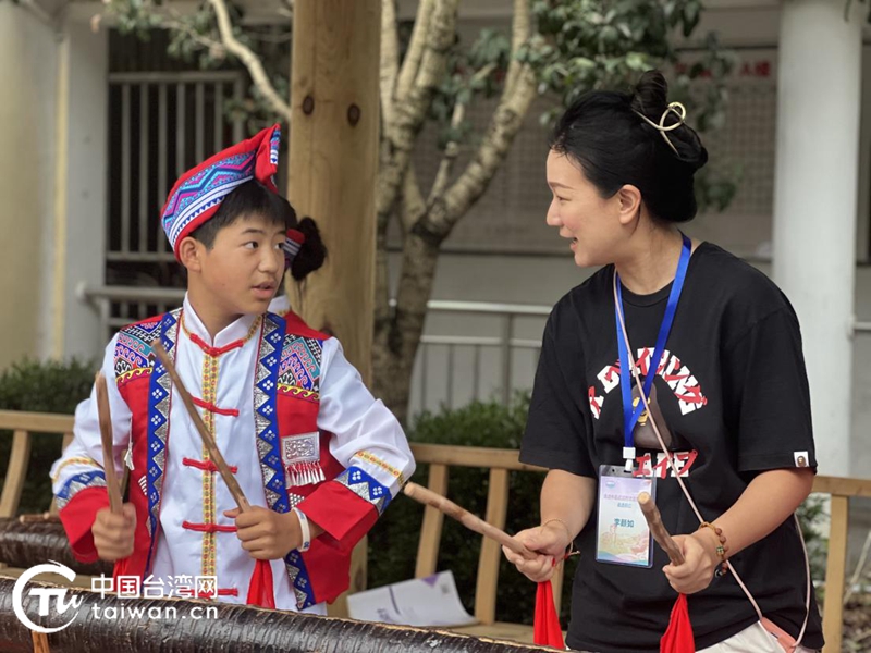 媒體團(tuán)來(lái)到石阡民族學(xué)校,臺(tái)灣自媒體人李顏如被仡佬族特色蹦蹦鼓深深吸引。她主動(dòng)向當(dāng)?shù)貙W(xué)生請(qǐng)教,與同學(xué)們圍站鼓旁,共同擊打歡快的鼓點(diǎn),傳遞著對(duì)民族文化的熱愛與尊重。