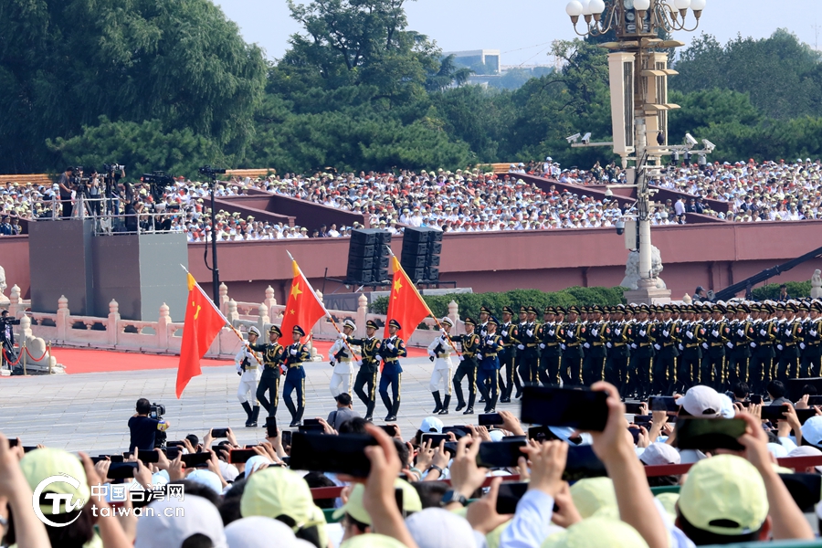 戰(zhàn)旗方隊(duì)接受檢閱。(中國臺灣網(wǎng)記者 尹賽楠 攝)
