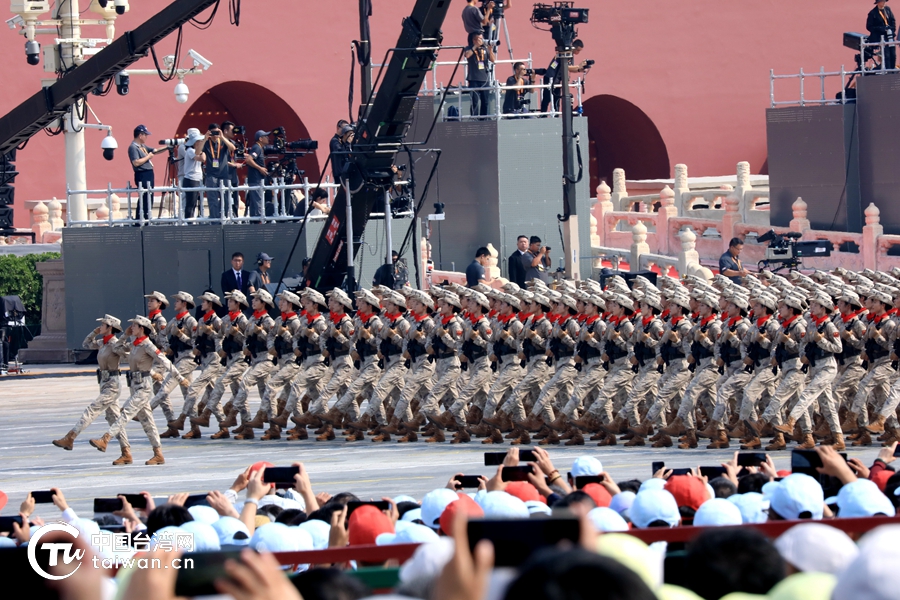 地面突擊方隊(duì)接受檢閱。(中國臺灣網(wǎng)記者 尹賽楠 攝)