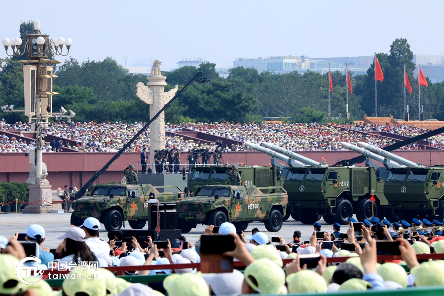 遠(yuǎn)程火炮方隊(duì)接受檢閱。(中國臺灣網(wǎng)記者 尹賽楠 攝)