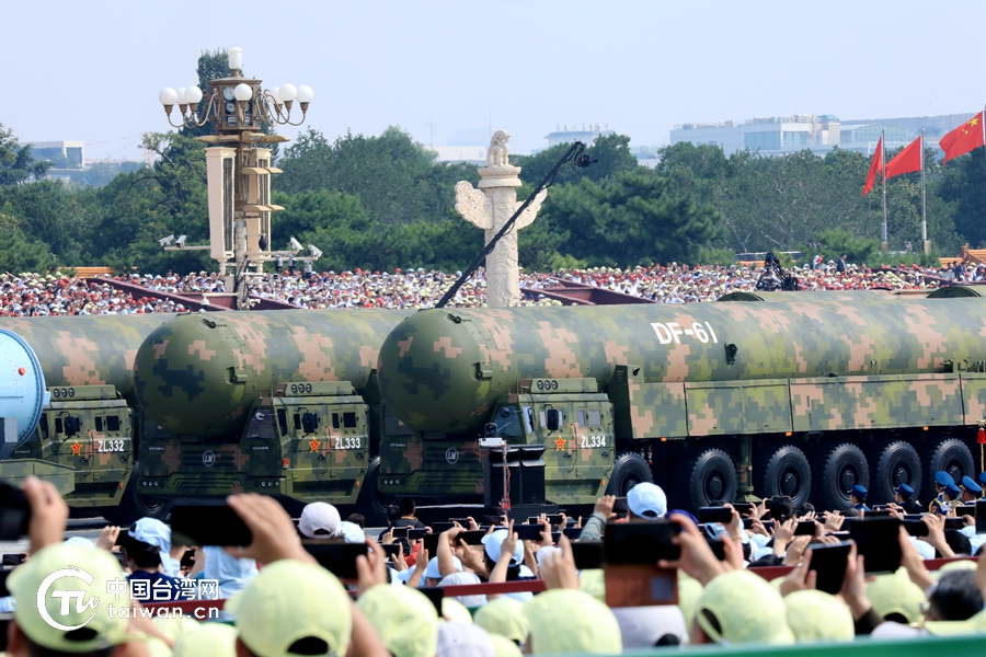 “東風(fēng)-5C”液體洲際戰(zhàn)略核導(dǎo)彈亮相,其打擊范圍可覆蓋全球。(中國臺灣網(wǎng)記者 尹賽楠 攝)