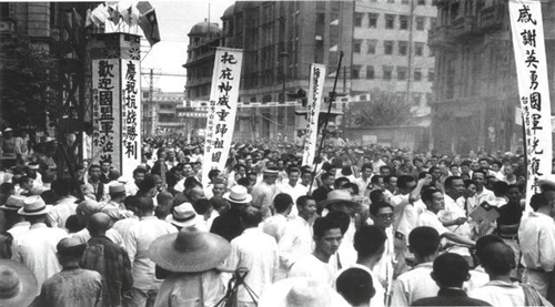 1945年10月25日,中國戰區臺灣省受降儀式在臺北舉行,日本駐臺總督安藤利吉在臺北公會堂內向中國臺灣省行政長官陳儀呈交降書、繳械投降,臺灣、澎湖列島重歸中國主權管轄,再也不是日本殖民地!芭_北40余萬市民……老幼俱易新裝,家家遍懸彩燈,相逢道賀,如迎新歲,鞭炮鑼鼓之聲,響徹云霄,獅龍遍舞于全市,途為之塞。”“家家戶戶,無比歡欣,祭祖謝神,向先民冥中告知臺灣已回歸祖國!10月25日這一天,也在1946年被確定為“光復節”,成為臺灣民眾舉家歡慶的歡樂節日。