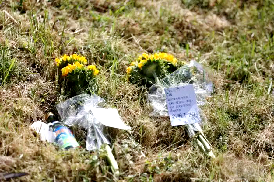 馬場町紀念公園里,民眾向英烈敬獻鮮花。(圖片源自網(wǎng)絡)