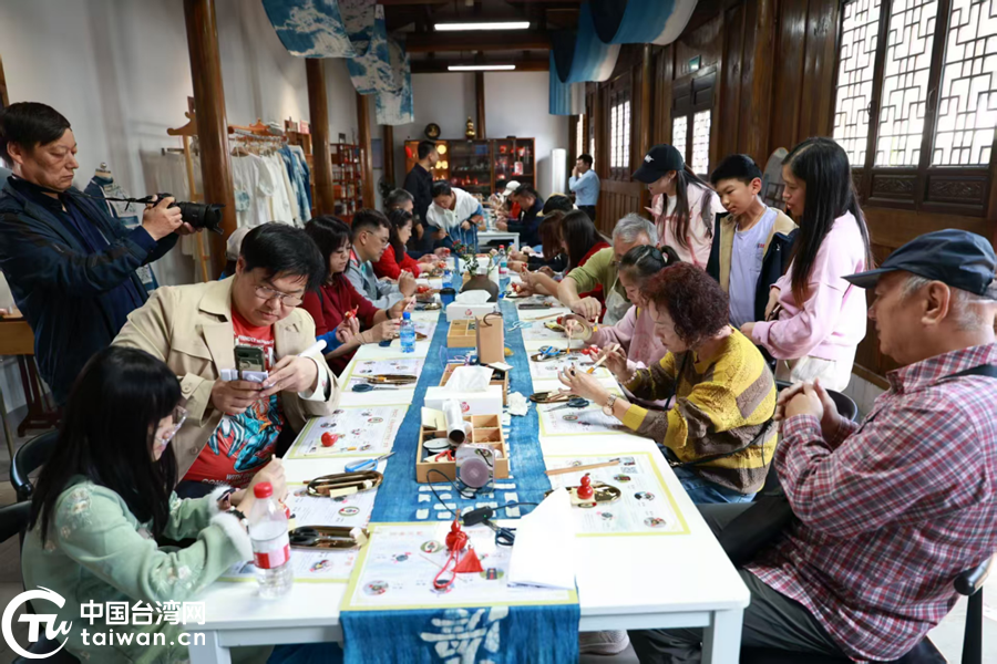 兩岸青年體驗扎染技藝。(中國臺灣網發)