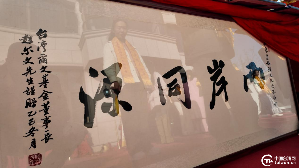 臺灣爾文基金會董事長趙爾文先生題贈“兩岸同源”牌匾(中國臺灣網記者 李鑫 攝)