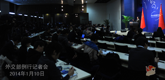 2014年1月10日,外交部發言人華春瑩主持例行記者會。
