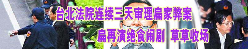 臺北地方法院24日開庭審查陳水扁涉及的公務機要費等弊案,經過漫長審訊,最后在陳水扁獨白近二小時后,庭訊于晚間7時許結束。在庭訊中,陳水扁可謂是使出了看家的本領,不但堅持不認罪,還炮火四射大爆“內幕”,企圖拉眾人下水,“拖延戰術”、“烏賊戰術”被陳水扁運用得爐火純青......《全文》 |