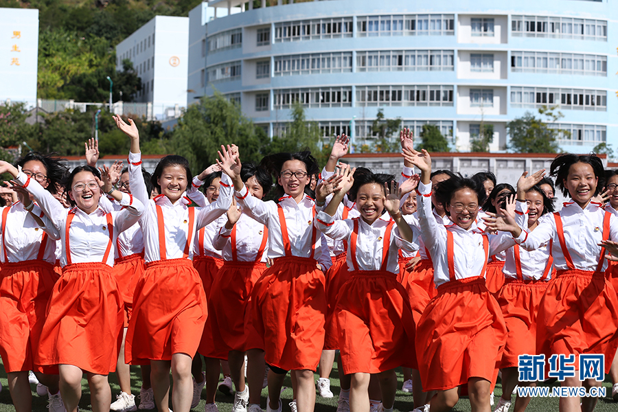 學生們面對鏡頭歡快地招手(2019年10月17日攝)。新華網 趙普凡 攝