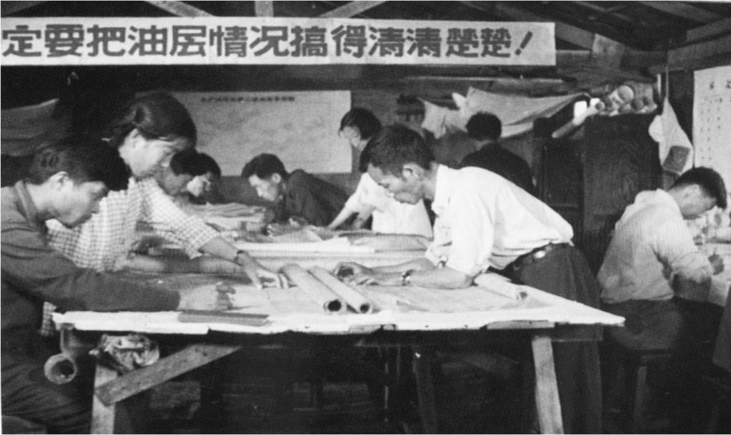 大慶油田開發初期,石油科技工作者在工作中。新華社發