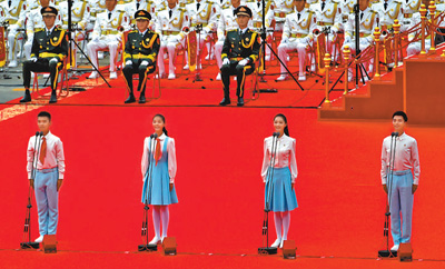 百年征程波瀾壯闊,百年初心歷久彌堅。7月1日上午,慶祝中國共產(chǎn)黨成立100周年大會在北京天安門廣場隆重舉行,各界代表7萬余人以盛大儀式歡慶中國共產(chǎn)黨百年華誕。中國人民解放軍71架戰(zhàn)機振翅長空,100響禮炮響徹云霄,中國人民解放軍聯(lián)合軍樂團奏響雄壯的《義勇軍進行曲》,共青團員和少先隊員代表集體致獻詞……城樓上下融通起真情交匯的心橋,廣場內(nèi)外匯聚成歡歌笑語的海洋,共同慶祝中國共產(chǎn)黨百年華誕,共同祝愿祖國和世界的明天更加美好。