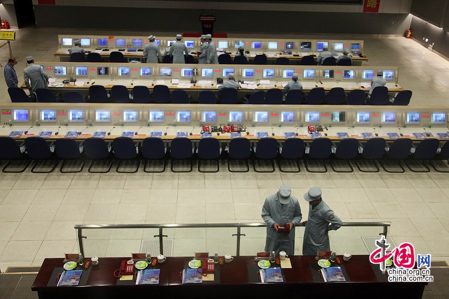2013年12月1日,西昌衛(wèi)星發(fā)射中心指揮控制大廳:西昌指揮控制大廳,工作人員在做準備。中國網(wǎng)記者 李佳 攝影