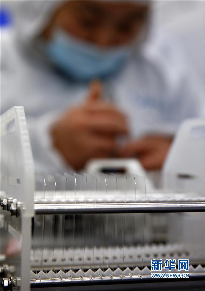 2000年10月,秦皇島市星箭特種玻璃有限公司開始與中國航天科技集團合作,從事空間用抗輻照玻璃蓋片、航天用摻鈰的二次表面鏡(OSR)玻璃基片和高強度抗輻照玻璃蓋片的研發(fā)生產(chǎn),產(chǎn)品先后用于神舟五號至神舟十號,雙星探測、嫦娥一號、二號、三號和天宮一號等多顆衛(wèi)星與航天器上。目前,該公司被中國航天科技集團指定為抗輻照玻璃蓋片全國唯一合格的供貨方。新華社記者楊世堯攝