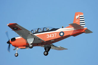 空軍官校這架編號3437的T-34C教練機昨天下午在高雄縣那瑪夏鄉失蹤。圖片來源:臺灣《聯合報》