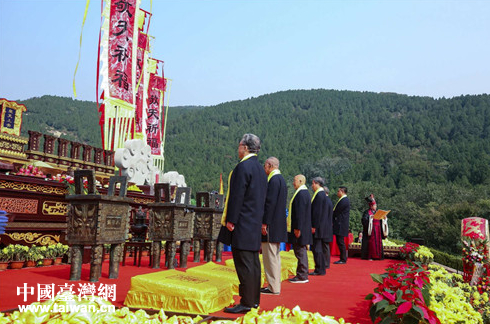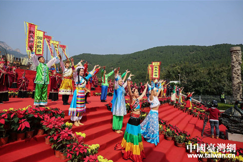 中國臺灣網(wǎng)10月18日泰安訊 10月13日,2018海峽兩岸暨全球華人敬天祈;顒釉谏綎|泰安隆重舉行。本次活動由山東省政協(xié)文史資料委員會、泰安市政協(xié)、山東省海峽兩岸經(jīng)濟文化發(fā)展促進會指導,九州文化傳播中心、羅浮山國學院主辦,泰山風景名勝區(qū)管理委員會、泰安市人民政府臺灣事務辦公室、山東綠地泉控股集團、山東泰山文化研究院承辦。中國國民黨前副主席蔣孝嚴、國臺辦交流局副局長董碧幽,九州文化傳播中心主任王明鑒、秘書長尚君奇,山東省臺辦副主任張民忠,山東省政協(xié)文史資料委員會主任馬嘯,泰安市政協(xié)主席周桂萍、副主席程明,泰山景區(qū)管委會主任王光峰,泰安市臺辦主任張慶峰、副主任馬鵬舉,以及來自臺灣宮廟、工商界代表人士和1000余名傳統(tǒng)文化愛好者出席了活動。