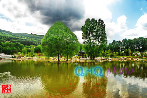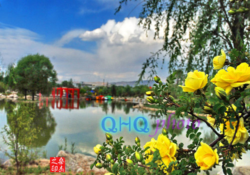 這里真是綠樹濃蔭夏日長。白云藍天,湖水蕩漾。魚游淺底,花香四溢。