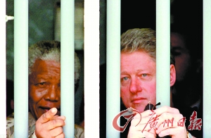 1998年3月27日,克林頓和曼德拉一起探訪曼德拉曾被囚禁的地方。 (資料圖片)